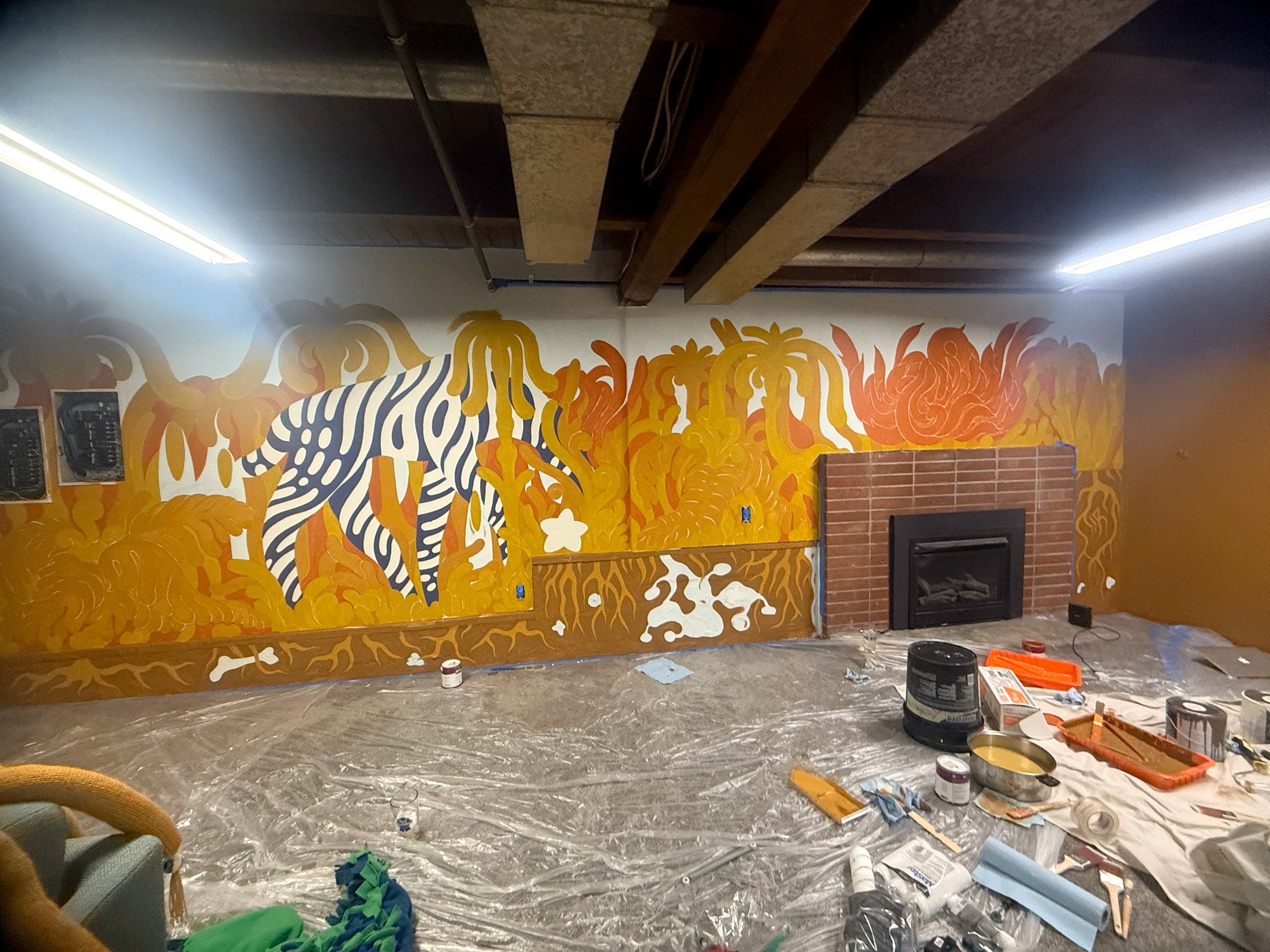 I recently finished a basement mural titled “Riches of the Earth” with my friend Abby. A medium that does not require me to slump my neck? Yes, please.